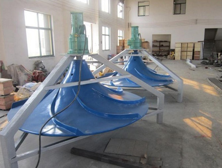 結(jié)構(gòu):多曲面攪拌機(jī)由傳動(dòng)部件、葉輪、底座、吊裝系統(tǒng)及電控組成。